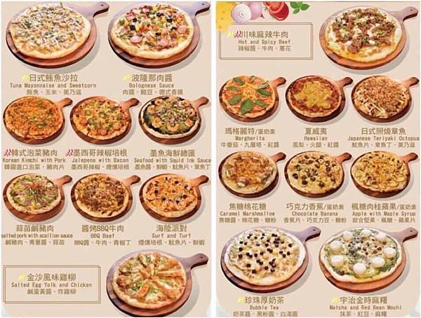 兩個9吋的pizza,口味都蠻重的,泡菜豬肉口味略酸辣,BBQ牛稍微甜一點,我個人覺得吃起來有點像壽喜燒,陳大德覺得有烤肋排的味道,但都是正面評價。另外,兩個披薩$249,我覺得很便宜,不過兩個人到最後會覺得有點兒膩味,如果買四個披薩吃兩餐的話,其中一個應該換成甜口味,會平衡一點⋯⋯但怎麼可能買四個披薩連吃兩餐呢=_=
